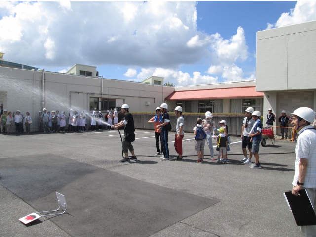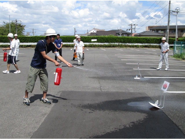 訓練実施後は、職員および地域住民の方に屋内消火栓・消火器の取り扱い説明を行い、実際に体験していただきました。