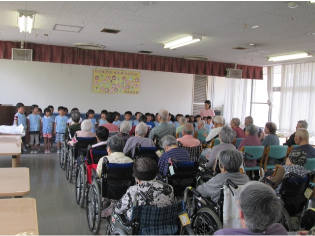 平成29年6月6日、若宮保育園のぞう組とらいおん組の年長さん33名が大府苑に慰問に来てくださいました。