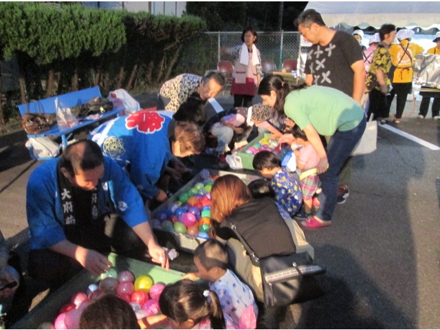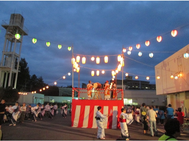 盆踊りでは、大府ばやし、炭坑節のほか、たくさんの曲に合わせて皆様が踊ってくださいました。模擬店では風船釣り、みたらし団子、わた菓子など、大人から子どもまで順番待ちの長い列ができました。