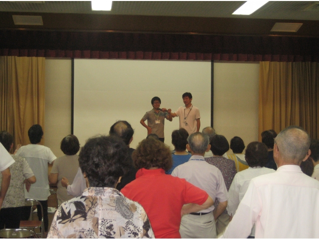 大府苑からは転倒を予防する筋トレやバランス体操「健康体操」と認知症を予防する運動「コグニサイズ」を紹介し、参加者の皆様に実践して頂きました。