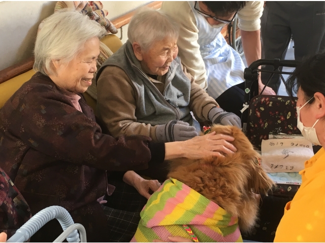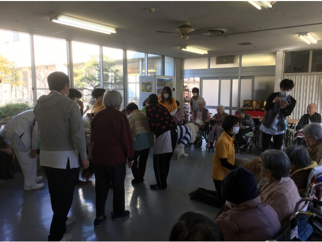 利用者の方も、職員も、わんちゃんとのふれあいの中で、ひとときの癒しをいっぱい感じたようです。しっぽいっぽの会のみなさま、大府苑に来てくださってありがとうございました!