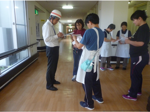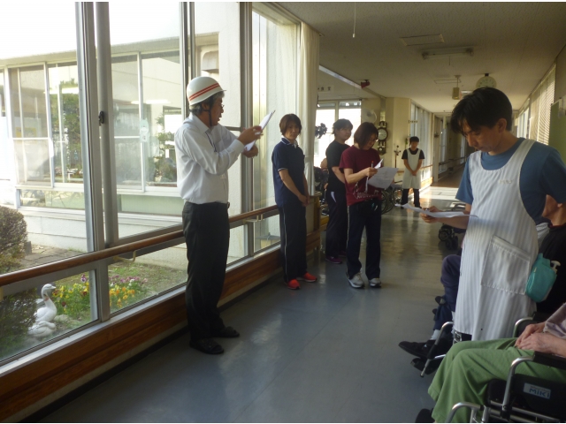 大府苑は立地的に周囲より高台にあり、洪水の被害はあまり想定されませんが、崖崩れからの土砂の流入などの可能性は十分あるため、そのような状況を想定し、訓練を実施しました。