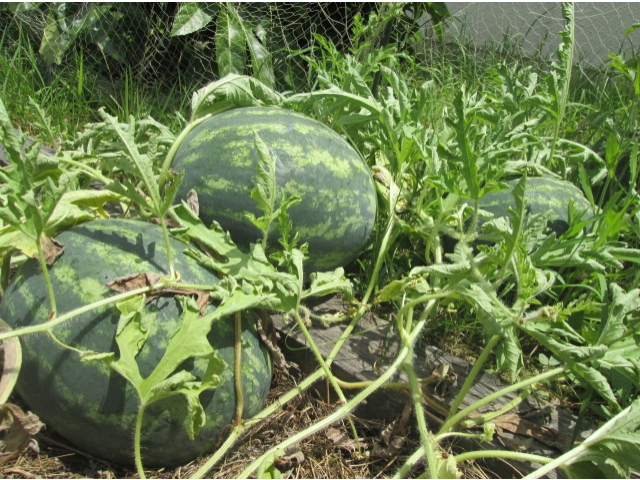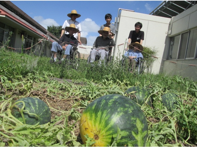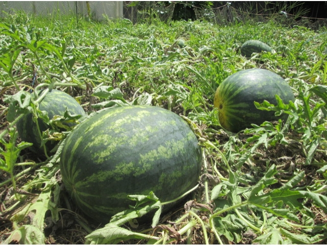 大府苑の畑にシルバーさんが植えてくれた すいかの苗がすくすく育ち なんと22個!!