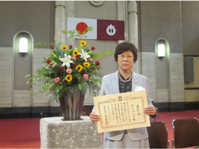 今回、大府苑に長年洗濯物整理のボランティアで活動されているグループさくらんぼ様が、受賞されました。