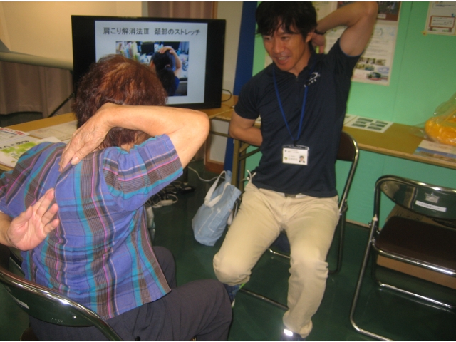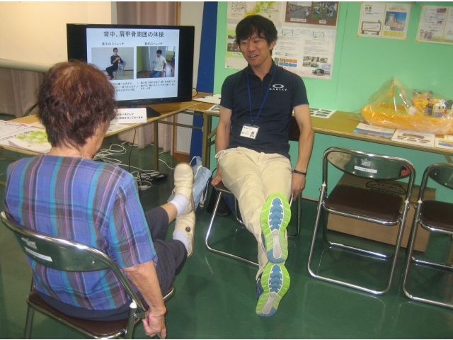リハビリ体験は、今年で3年目。ただ体操をするのではなく、肩、腰、膝痛を予防する運動を教えてほしいという本格的なリハビリ運動を希望する方がほとんどでした。