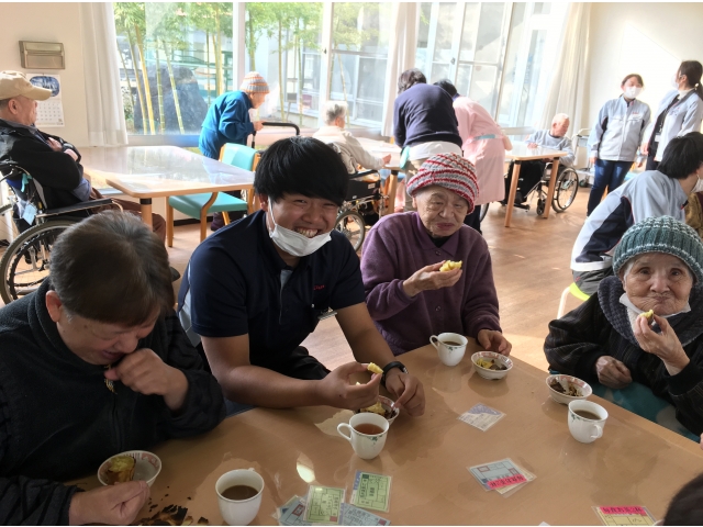 今日は焼き芋機で焼いた石焼き芋をみなさんで召し上がっていただきました。