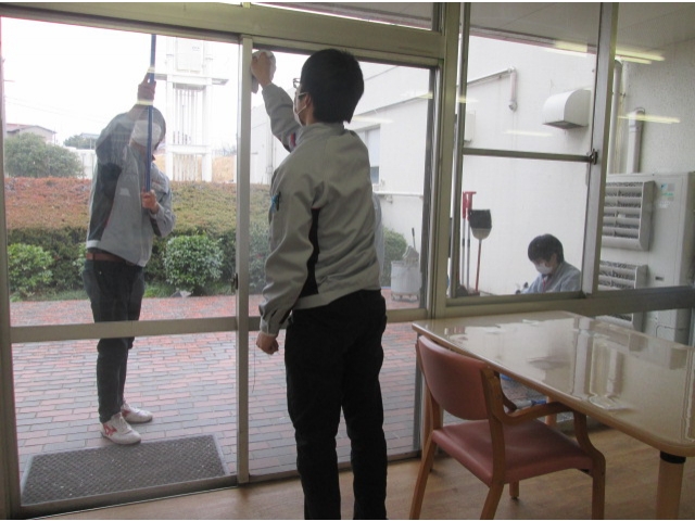 - みなさんで窓拭きをしてくださいました