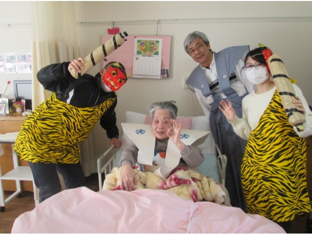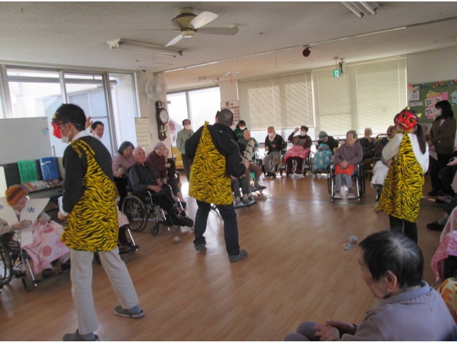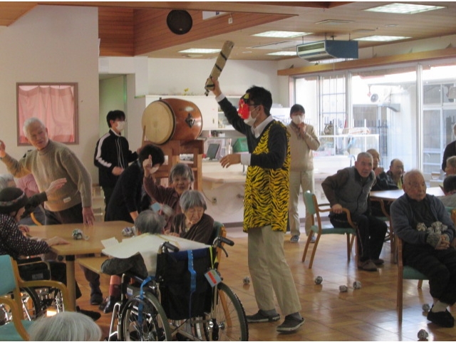 3年ぶりの節分会 利用者様・職員は 季節の変わり目を感じながら 幸せと健康を願いました。