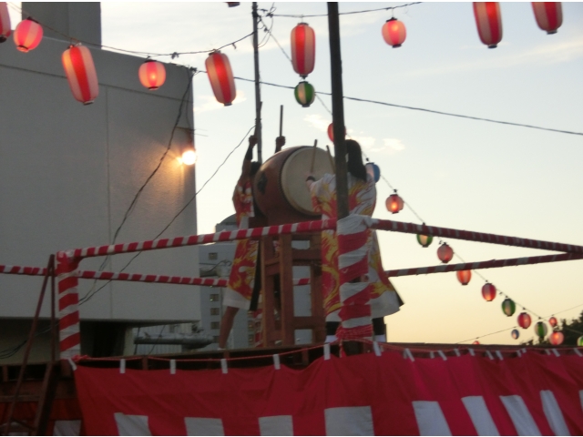 夕闇迫る午後6時50分、勇壮な石ヶ瀬太鼓でオープニングを迎え、踊りの開始ともにやぐらの周りには多くの方に踊りの輪を作っていただきました。