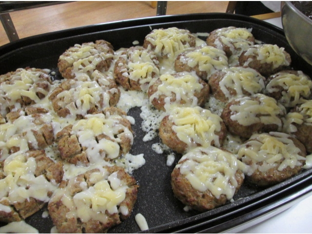 「こんな日はごはん大盛りにしてくれんといかんなぁ」「チーズがのびるねっ」と利用者のみなさんから喜びの声が!