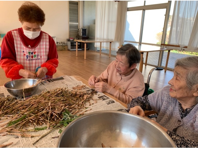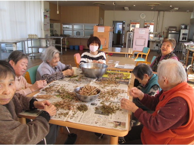 「指が真っ黒になるからなぁ~」なんて言いながら集まってくれた、はかま取りチーム。