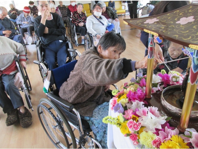 相談員の司会進行の下、苑長より花祭りについての説明がありました。