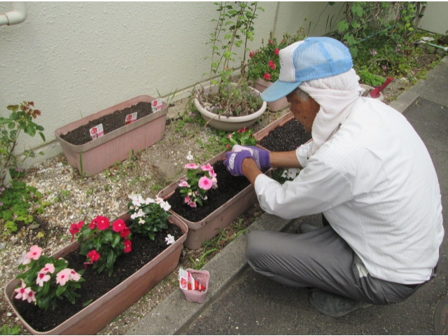 - シルバー人材センターの方が、日日草を植え替えてくれました。