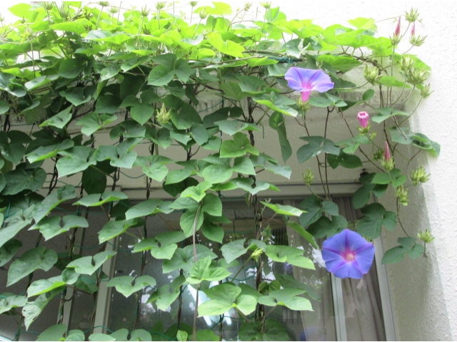 - 6月3日現在で、早くもアサガオが咲き始めました。