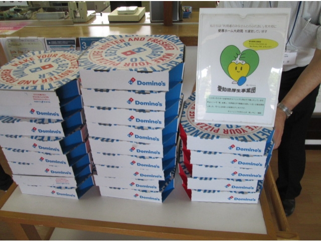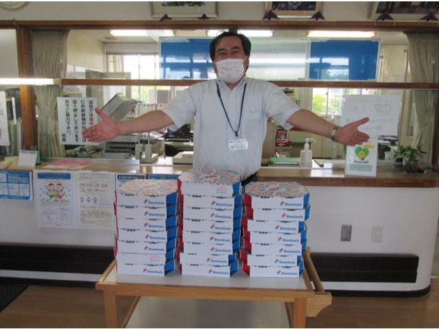 ドミノ・ピザ様は地域社会を支えている方々に向けた支援活動として、「無料ピザで地域支援」に取り組まれています。大府市にあるドミノ・ピザ大府江端町店様より、大府苑にも6月9日から3日間、職員に対し温かいピザの提供をいただきました。ご厚意に感謝し、美味しいピザをいただき、新型コロナウイルスに負けないように職員一同頑張っていきたいと思います。心も温まる素敵なたくさんのピザをご提供いただき、ありがとうございました。