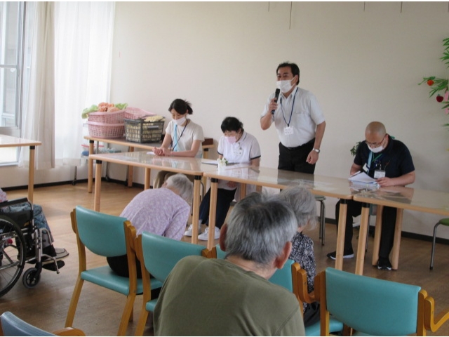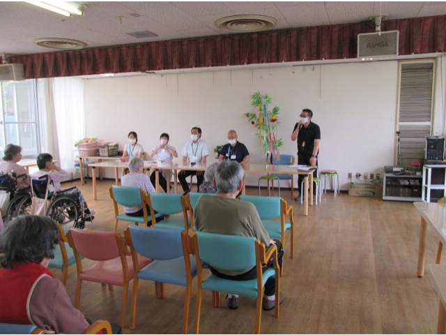 6月22日月曜日、14時30分から利用者と職員との話し合いがありました。苑長からのあいさつの後、各部署からの連絡事項や利用者様に対する希望などをお聞きしました。また利用者様からも質問や希望、ご意見などいただき、貴重な話し合いの場になりました。