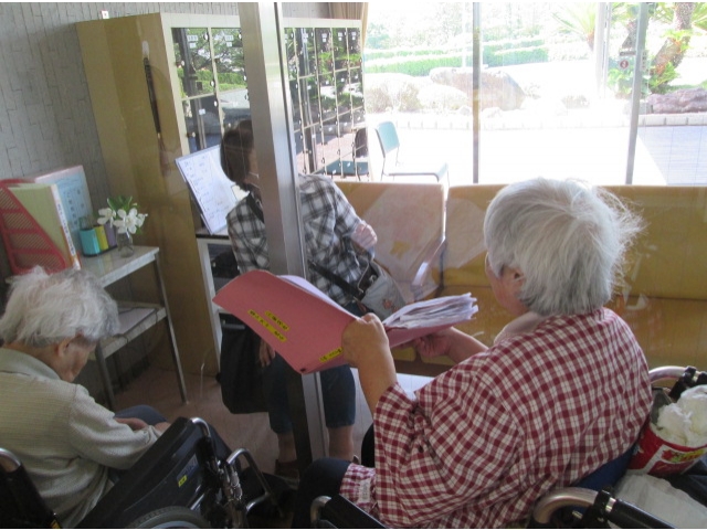 - 面会自粛中に作成した塗り絵の作品集を見て頂きました。