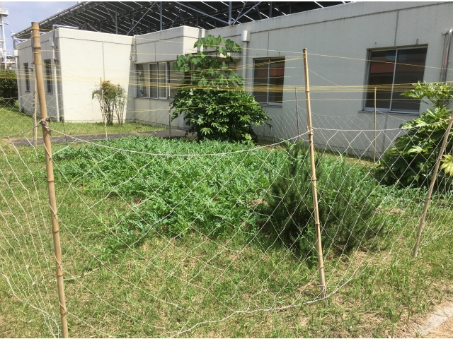 大府苑では、居室と居室の間にスイカ畑をつくり、シルバーさんが一生懸命お世話をしてくださっています。5月に植えた苗は、初夏の日差しをたくさん浴びて、ぐんぐん育ち、6月末にはご覧の通り!梅雨の長雨でしっかり水分を蓄え、順調に育っています。