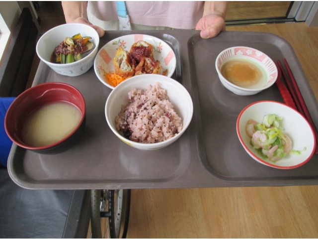 食事は赤飯・豚カツ・抹茶ミルクプリンなどなど豪華でした。