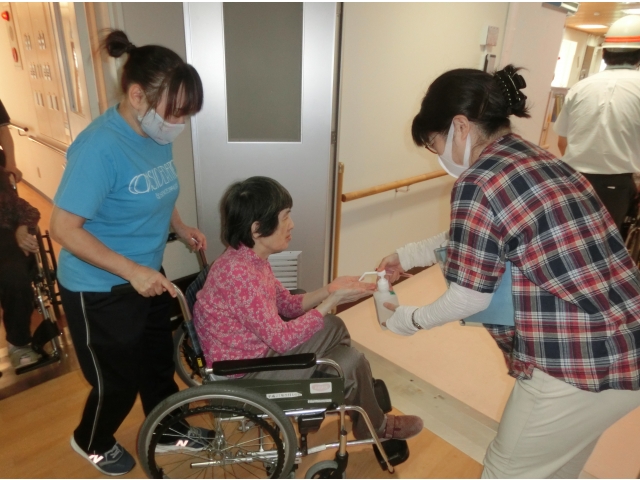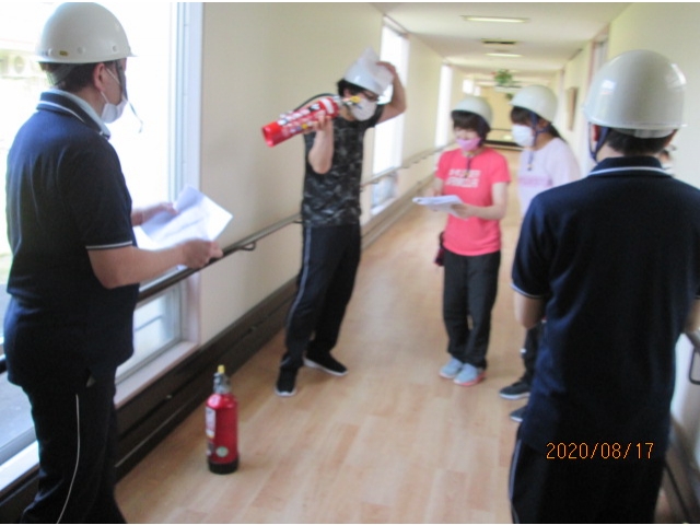 - 防災訓練後は、手指消毒をして終了しました。
