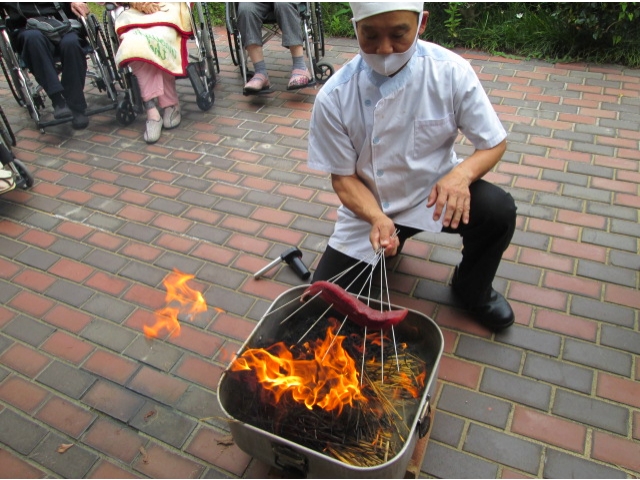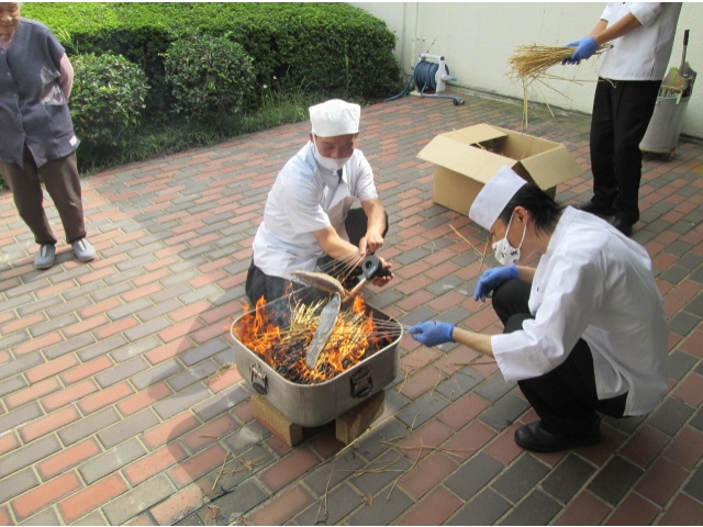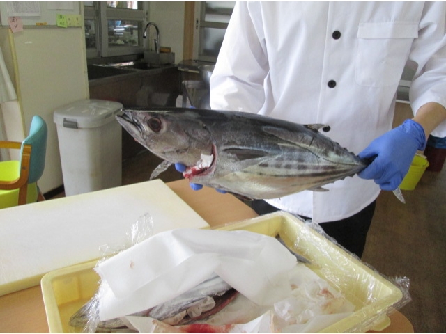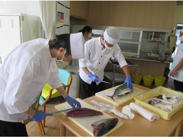 10/14(水)は月に一度の誕生会。今月はかつおを解体し、わら焼きにしてタタキでご提供!と、いうことで、大府苑自慢の調理師による解体ショーの始まり~