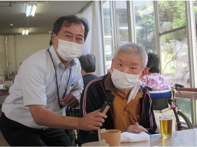 10月生まれの方は9名、苑長からの祝辞、相談員からの紹介の後、拍手と乾杯でお祝いしました。