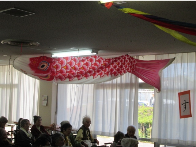 - 大きな魚(こいのぼり)を飾り付けし、雰囲気を盛り上げました。