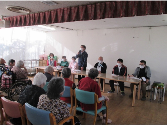 これからの行事、日常生活、健康管理、食事、機能訓練についてそれぞれ担当の職員から説明し、利用者様から質問をいただきました。マスクについて、面会についてなどの質問に相談員を中心にお答えさせて頂きました。