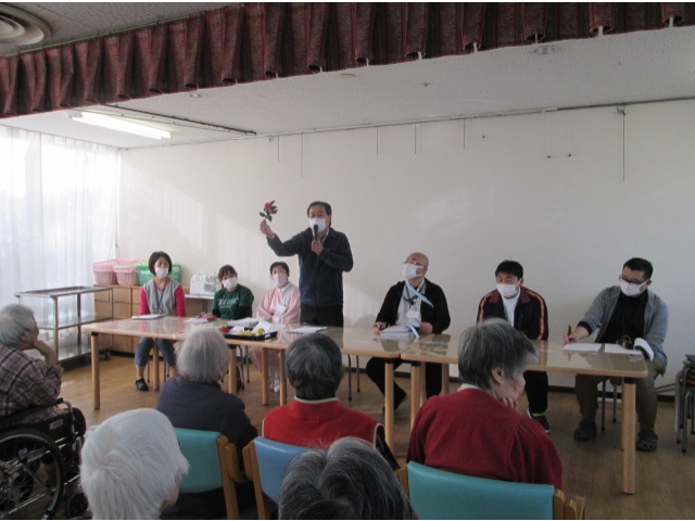 11月24日水曜日 14時30分から利用者様と各部門の職員との話し合いがありました。相談員の進行で、苑長の挨拶で始まりました。