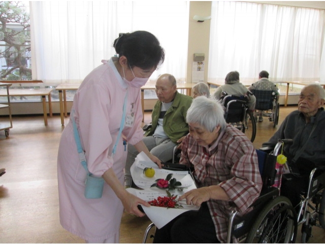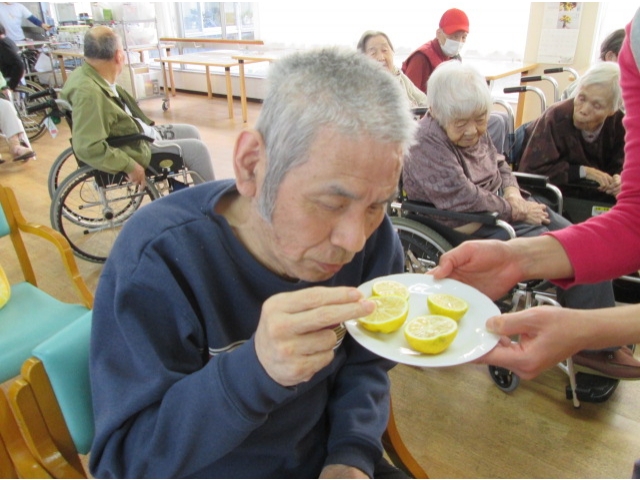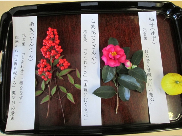 - 柚子や南天、山茶花などは職員が持ち寄ったり苑に咲いている植物です。
