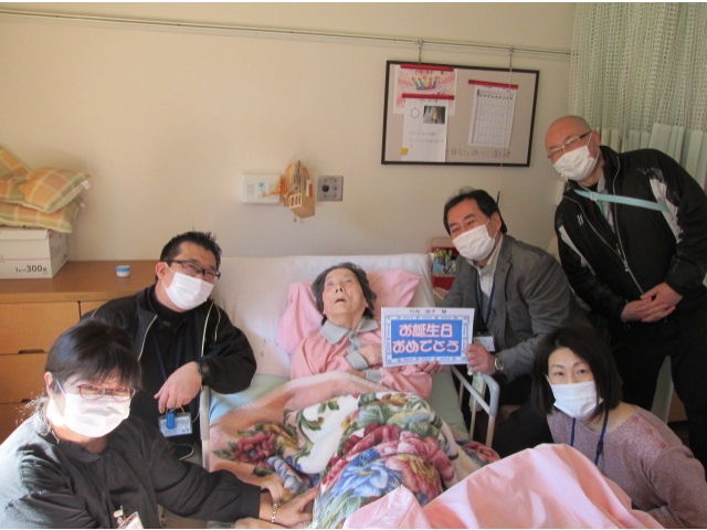 - お部屋で食事をされる利用者様には、お部屋まで伺ってお祝いしました。