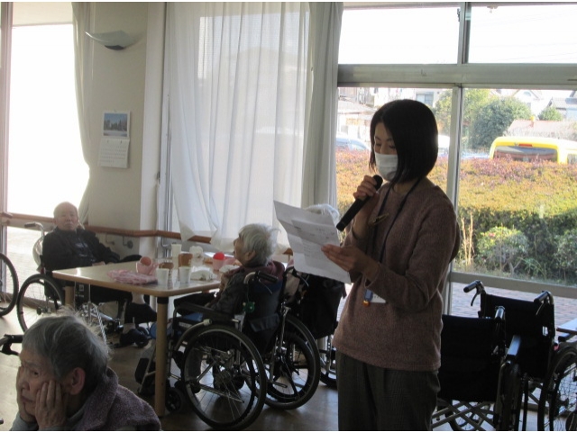 - 苑長より、1月生まれの方へ祝辞が送られました。