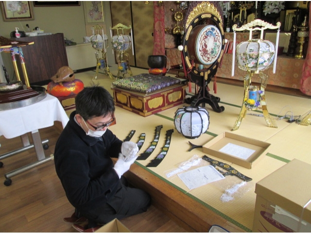 - 新しい提灯には鳳凰が「縁起物ですよ」と仏具屋さんが組立てます