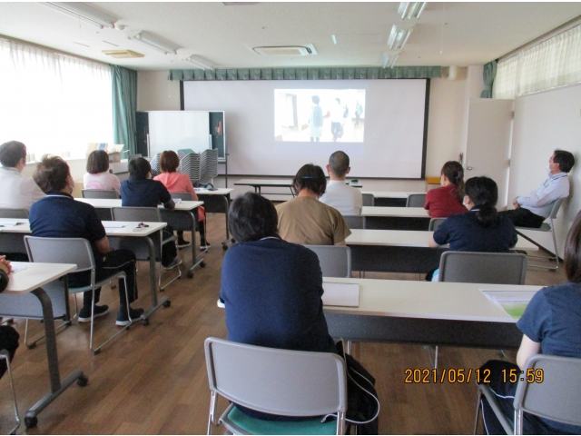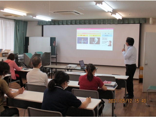 5月12日15時30分より、マナー研修と認知症高齢者とのコミュニケーションについて研修を行いました。