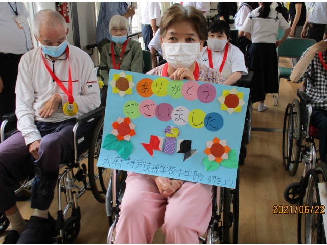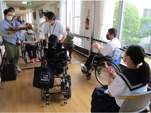 6月22日火曜日14時から、大府苑の隣にある大府特別支援学校の生徒5名のチャレンジ体験がありました。