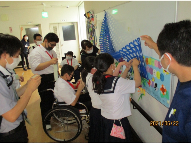 最後に、生徒さんから挨拶があり、少し早い七夕の短冊に願い事を書いてチャレンジ体験が終了しました。制約の多い中ではありましたが、利用者から多くの笑顔がみられました。大府特別支援学校の皆様ありがとうございました。