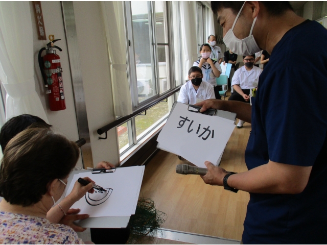 - 利用者からは、足で字を書いたり、絵を描いて当ててもらう問題を出しました。