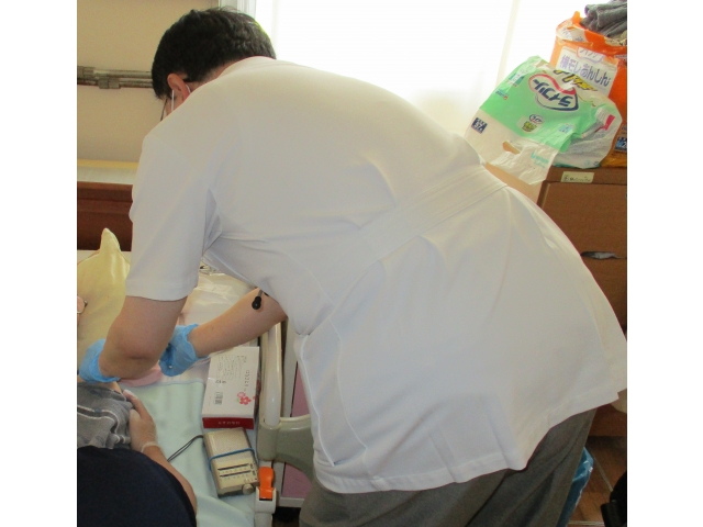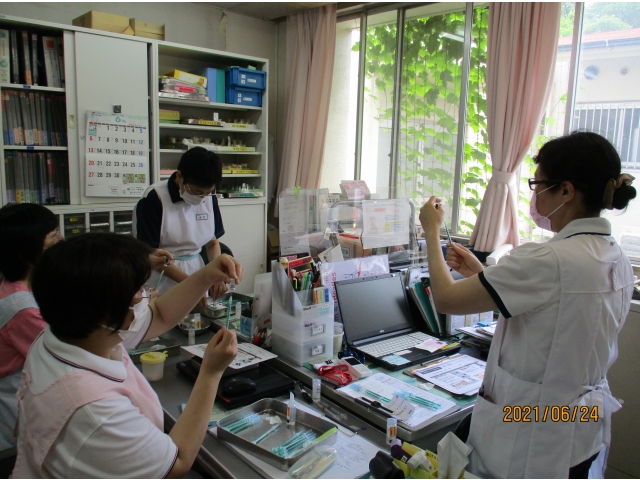 - 嘱託医が、居室に伺ってワクチン接種を実施しました。