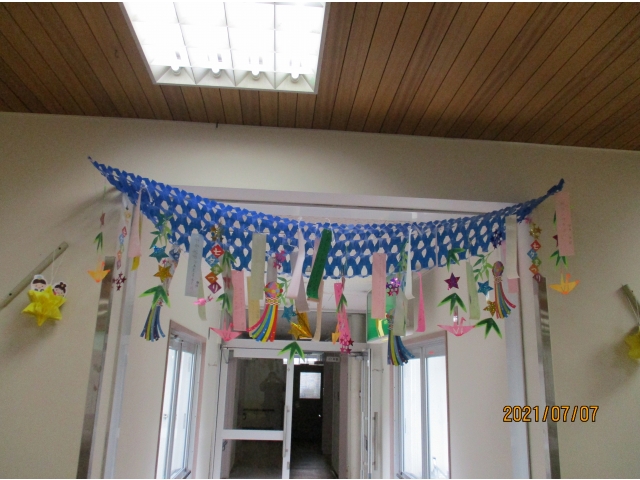 - 施設内に短冊や七夕飾りを飾り付けしました。