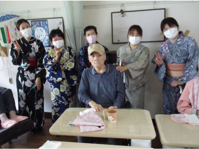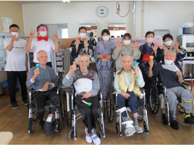 - 浴衣姿の職員と、希望者は記念撮影を行いました。