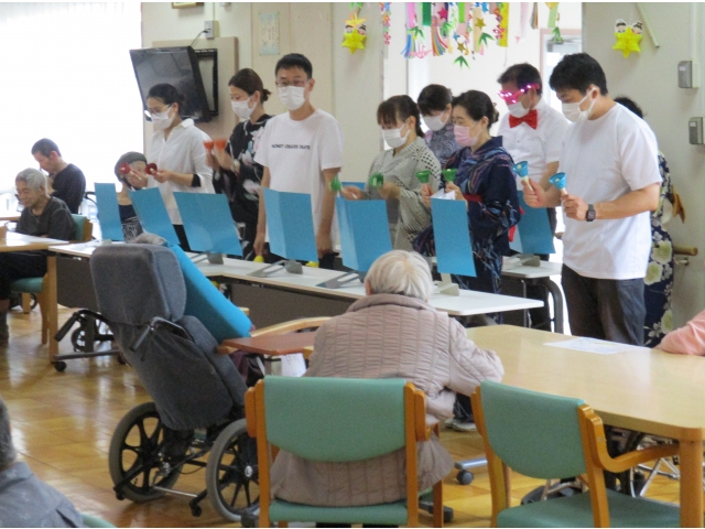 7月7日水曜日、あいにくの雨ふりの七夕となりましたが、昼食前に七夕祭を行いました。