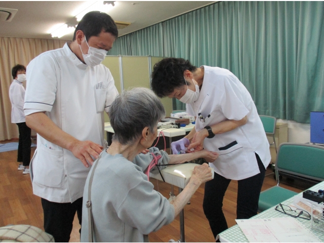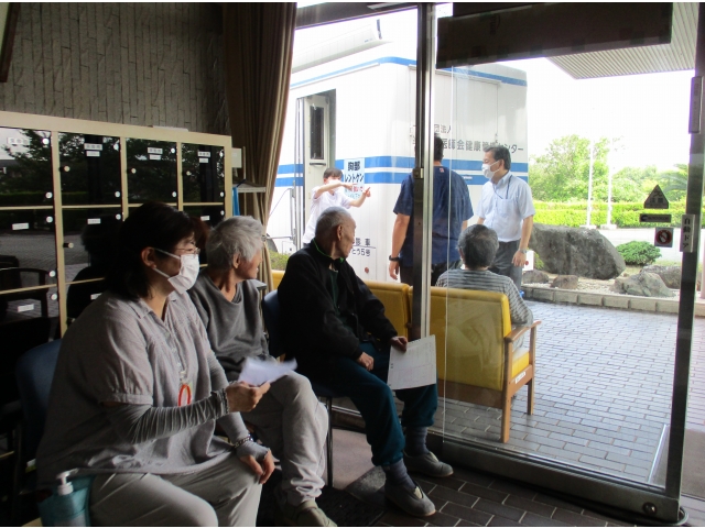 玄関前にはレントゲン車が待機し、会議室では採血コーナーができ、レントゲン車の乗車が難しい方のために機能訓練室はポータブルレントゲンの会場となりました。