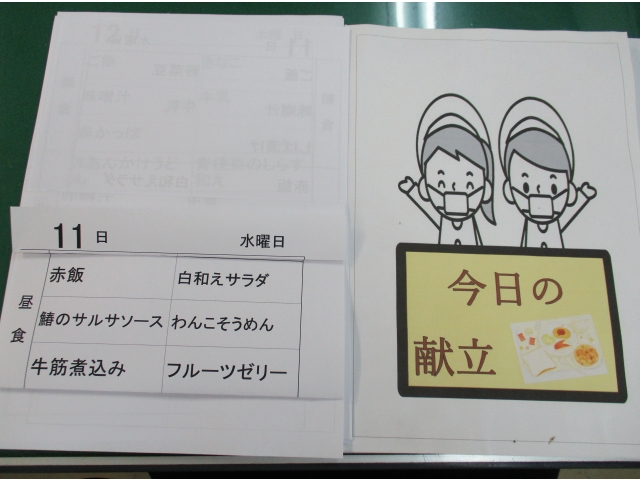 - 管理栄養士より、今日のメニューの紹介がありました。