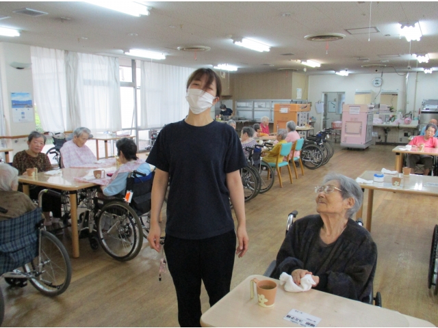 9月1日水曜日、17時から夕食前にカラオケDAMを利用して、口腔体操を始めました。 食堂にはテレビがないため、音声のみでしたが歌を歌ったり、職員と一緒に口腔体操を行いました。 今後カラオケDAMをどんどん活用しながら、口腔体操やパタカラ体操などに利用していく予定です。
