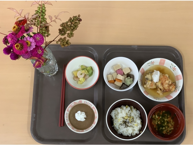 - 栗ご飯など秋の味覚をたくさんいただきました。