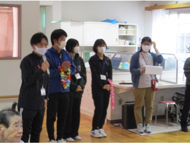実習生からもお祝いの言葉があり、偶然にも今月生まれの学生もいました。職員と利用者、実習生のみんなでお誕生者をお祝いしました。