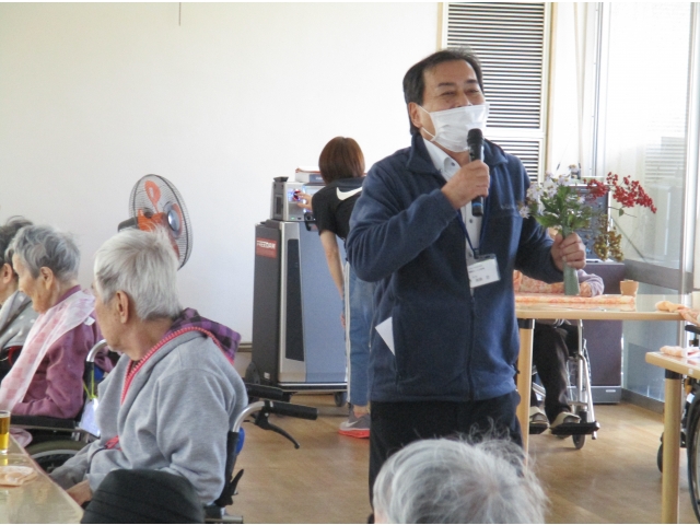 相談員の司会進行の下、苑長より祝辞と真っ赤に色付いた南天の実の紹介がありました。
