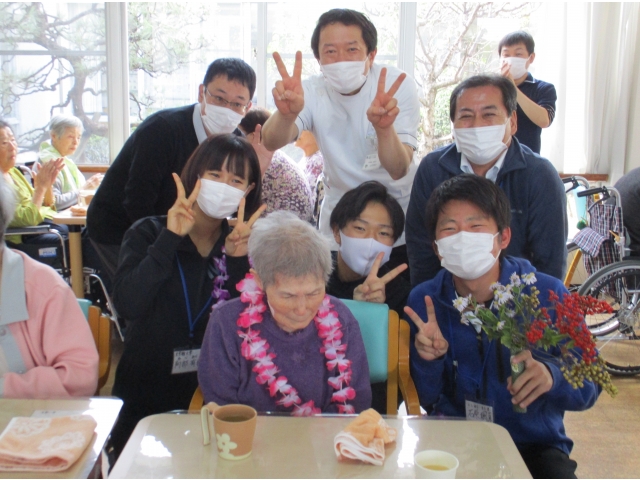 - お部屋で食事をされる利用者様には、お部屋でお祝いしました。