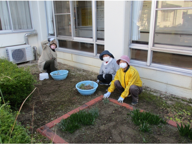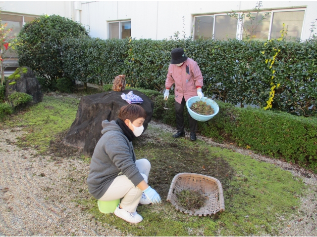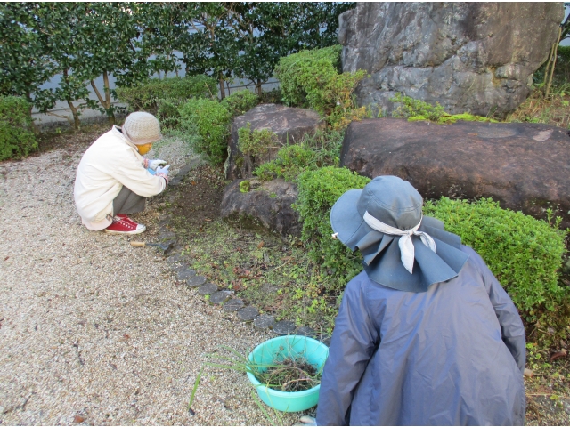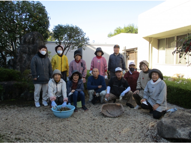 11月15日月曜日の朝から、森岡長生会のボランティアの方々が草取りを行ってくださいました。