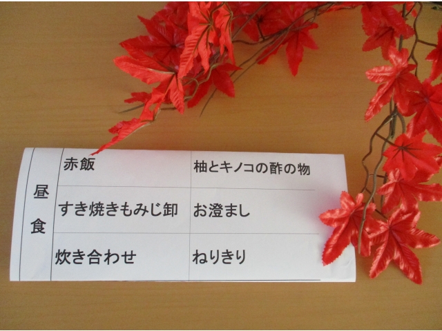 昼食も豪華で、すき焼きやねりきりなど彩り豊かでした。